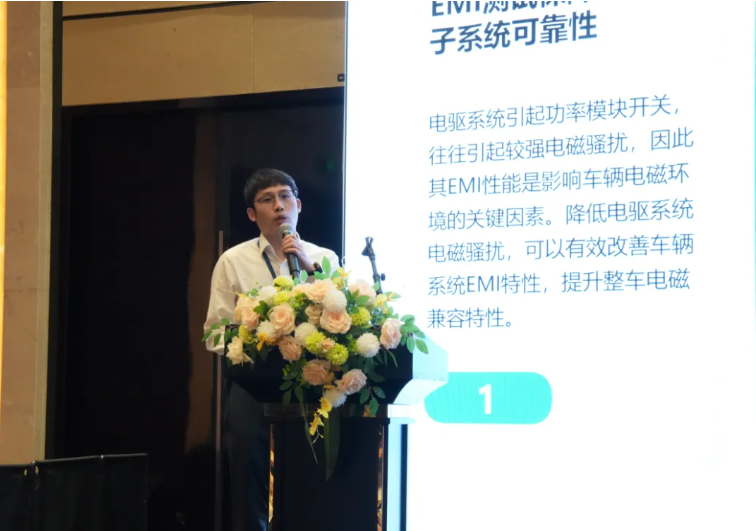 随后湖南中车时代电驱科技有限公司研发副总监刘伟良、无锡星驱科技有限公司控制器开发平台总工夏正鹏、东风汽车公司研发总院主管郭军朝、中汽研新能源汽车检验中心(天津)有限公司电磁兼容部部件电磁兼容室主任王云、联合汽车电子有限公司电力驱动业务部磁组技术负责人袁文琦、特来电新能源股份有限公司模块开发部经理种马刚6位嘉宾发表演讲。