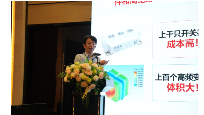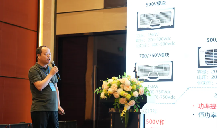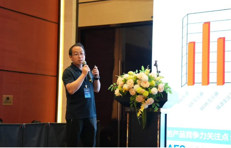 种马刚以《磁性器件在充电模块中的应用》为题发表演讲,充电模块是直流充电设备的核心部件,占系统总成本的50%,发展趋势为大功率、高效率、低成本。磁性器件是充电模块电能转换的核心载体和影响其技术发展的关键零部件,其成本占比达25%,发展趋势为结合功率拓扑的演进,通过深度磁集成化实现低成本和高效率,并推广使用新磁芯材质,从而助力充电模块向更高功率密度、更高效率的方向发展。