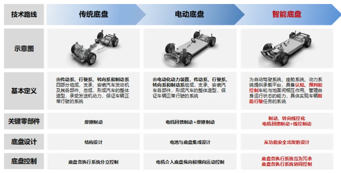 底盘作为汽车安全可靠的运行载体,其技术从传统向智能升级,通过机电一体化改造和系统集成化控制,实现各子系统深度协同与快速响应,支撑新能源汽车高级别自动驾驶和电动化、智能化发展。
