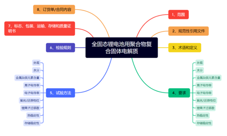 《全固态锂电池用聚合物复合固体电解质》规定了全固态锂电池用聚合物复合固体电解质的技术要求、试验方法、检验规则、标志、包装、运输、贮存及质量证明书与订货单(或合同)内容。适用于全固态锂电池用聚合物固体电解质或聚合物电解质与无机粒子复合的固体电解质。主要内容如下: