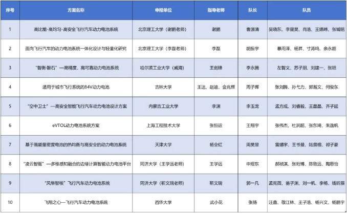 各参赛队伍按照方案总分高地排序,最终确定10支队伍进入决赛,名单如下(按照单位首字母排序)。