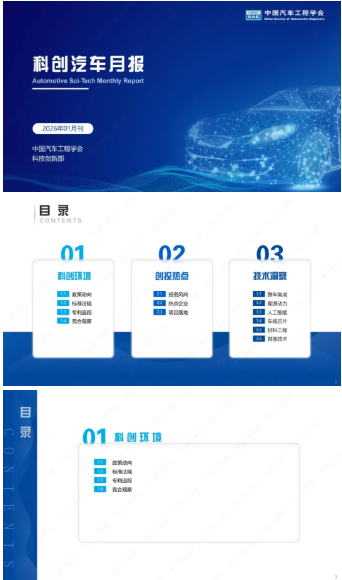 《科创汽车月报》由中国汽车工程学会 科技创新部 负责整理,按月度发布。报告中含部分原创内容,版权所有:中国汽车工程学会。如有转载,请注明引用来源。