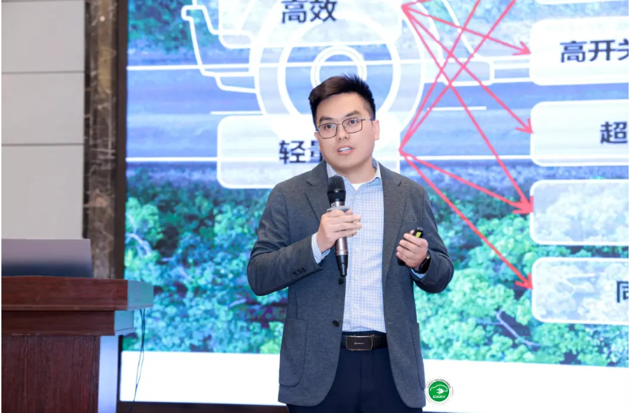 黄双意作题为《电驱防护技术解决方案进展与前瞻》的报告。他指出,公司专注于新能源汽车电驱系统的防护技术,已形成三大产品线:轴接地导电环、绝缘树脂(如XT-1699高导热浸渍树脂)及透气阀。报告分析了电机高压化、高转速、油冷趋势下在热管理、绝缘失效、压力失衡等方面的挑战,并分享了公司在材料改性、树脂配方、结构设计等方面的创新成果,强调系统化防护方案提升电驱系统可靠性、寿命与安全性的重要意义。